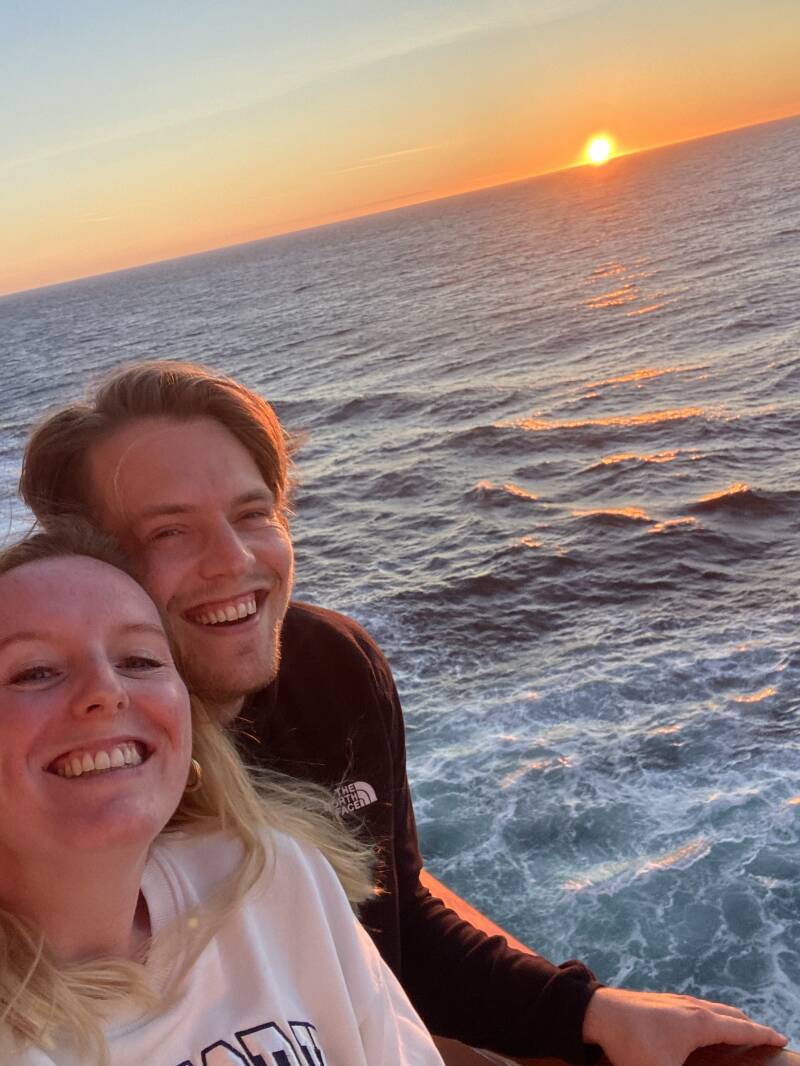 Aan boord hebben we lekker geluncht en genoten van de activiteiten aan boord en van weer een super leuk optreden in de inmiddels zo geliefde Carousel lounge. We werden getrakteerd op een supermooie zonsondergang en een hoop wind, haha!